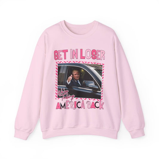 GET IN LOSER WE'RE TAKING AMERICA BACK TRUMP SWEATSHIRT